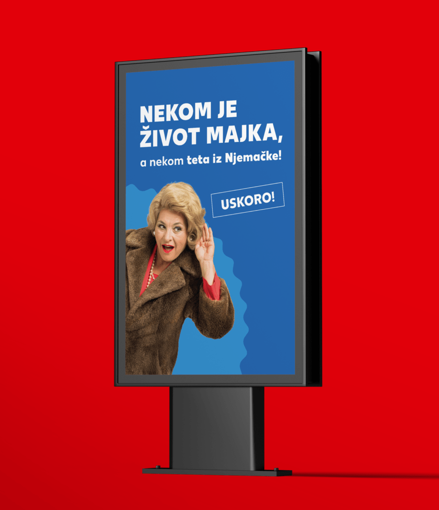 Kako bismo se diferencirali od konkurencije, odlučili smo zaigrati na kartu zajedničkog kulturnog nasljeđa. Medijskim prostorom najednom su zavladale upečatljive dame s trajnim frizurama i kompletima u nijansama ružičaste, predvođene pojavom u raskošnoj bundi – glavnom tetom! Sterilne korporativne poruke zamijenili smo simpatičnim gastarbajterskim rječnikom. Pod sloganom „njemačka kvaliTETA“, stvorili smo lik koji je istovremeno topao i autoritativan u domeni dobrog življenja.